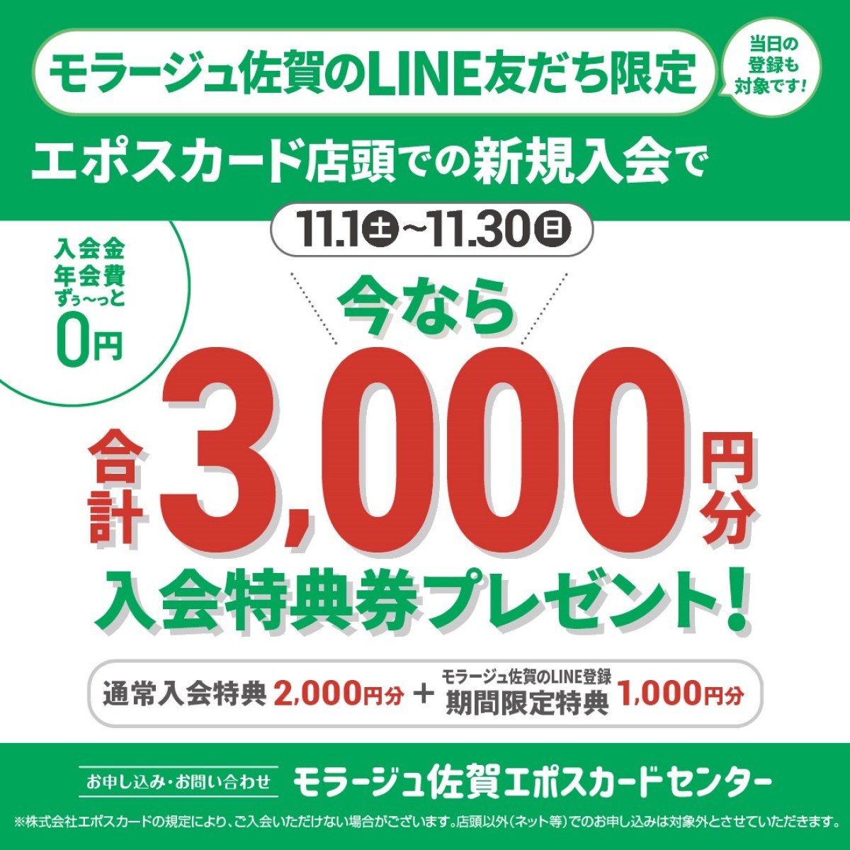モラージュ佐賀エポスカードご入会3,000円キャンペーン開催中!