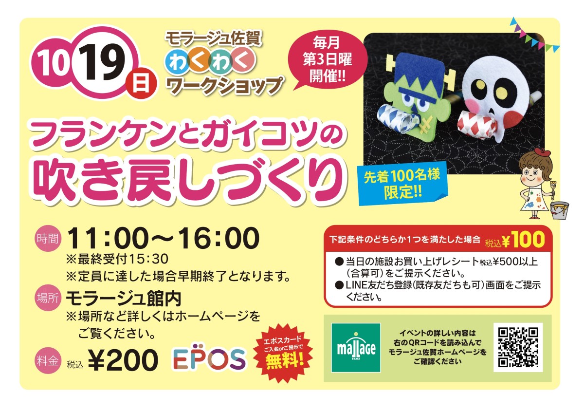 わくわくワークショップ ハロウィン フランケンとガイコツの吹き戻しづくり