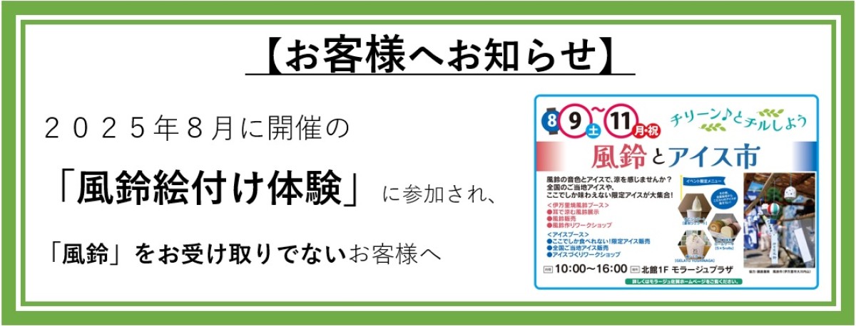2025年8月の「風鈴絵付け体験」に参加され、「風鈴」をお受け取りでないお客様へのご案内