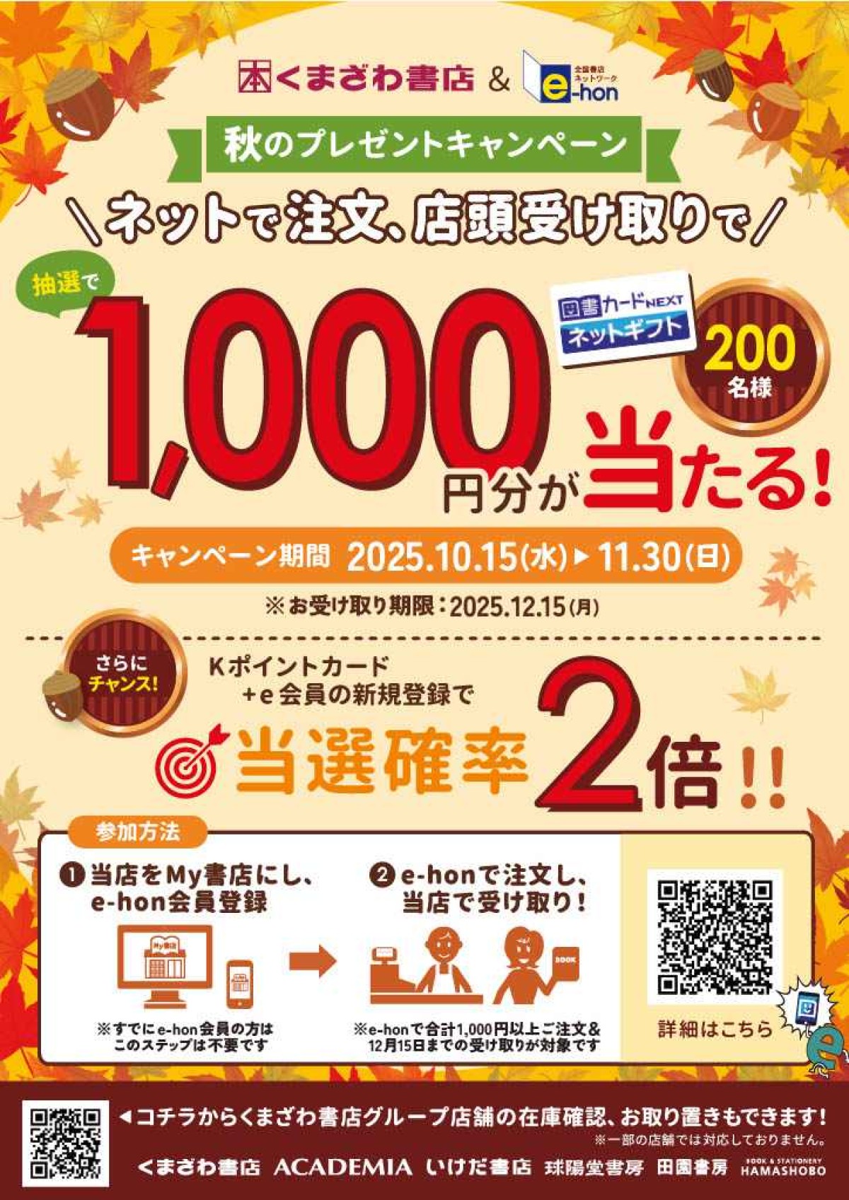 くまざわ書店 × e-hon 秋のプレゼントキャンペーン