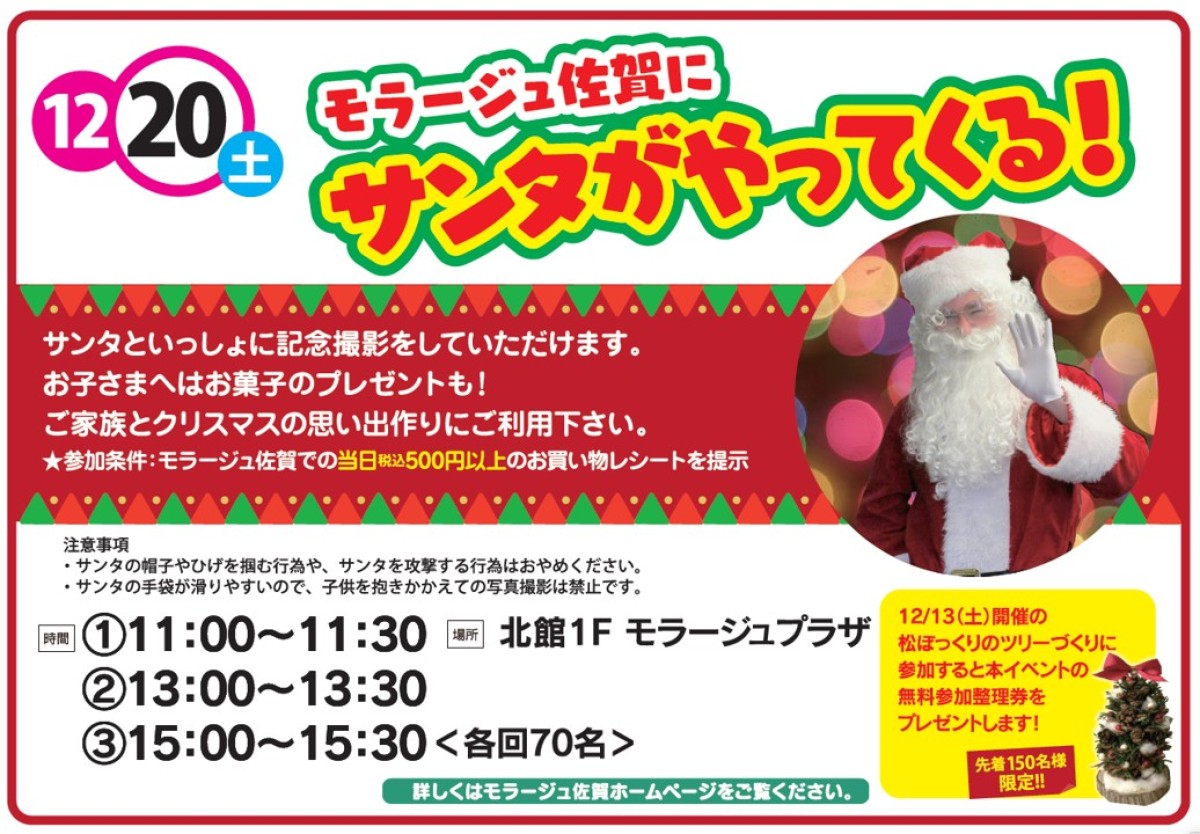 12/20(土)開催のサンタ記念撮影会の無料参加整理券をプレゼント!