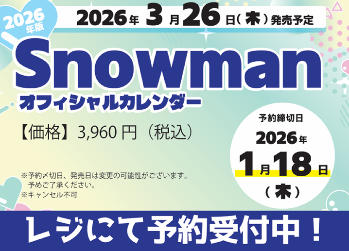 Snnowmanオフィシャルカレンダー予約受付中!